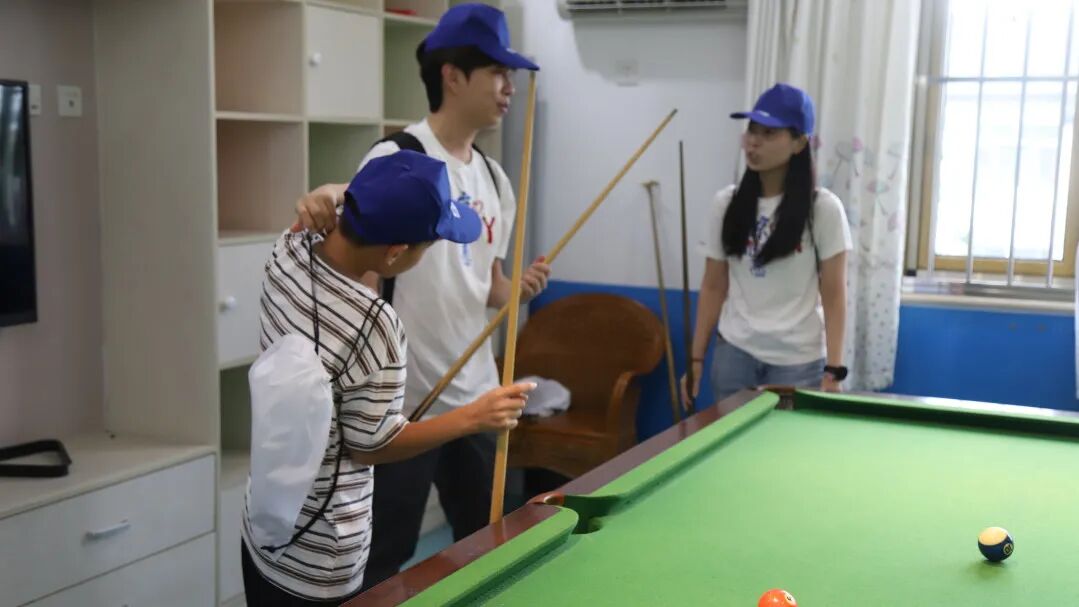 同时,孩子们的愿望清单中也提到了希望带领他们进行一日外出游学活动,因此志愿者团队提前一个半月就开始策划“北京野生动物园亲近大自然之旅”。但由于8月8日5时房山区启动防汛三级应急响应,院方决定在区内进行活动,我们及时启动了雨天备用方案。当天上午,我们在福利院活动室内陪伴孩子们进行了两场友谊赛,志愿者们耐心指导孩子们握拍、击球,陪他们切磋技艺。每个专注的瞬间与成功的击球,都伴随着真诚的鼓励与清脆的笑声,乒乓球台前、台球桌旁瞬间成为了欢乐的海洋。这简单的比赛不仅锻炼了身体,更悄然拉近了心与心的距离。